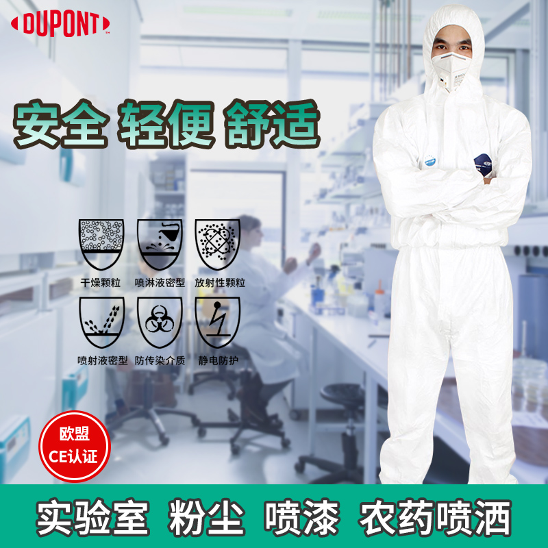 杜邦1422A工業(yè)連體帶帽防護服 防噴漆粉塵農藥靜電玻璃纖維隔離衣 防護效果佳,輕便舒適,透氣性良好